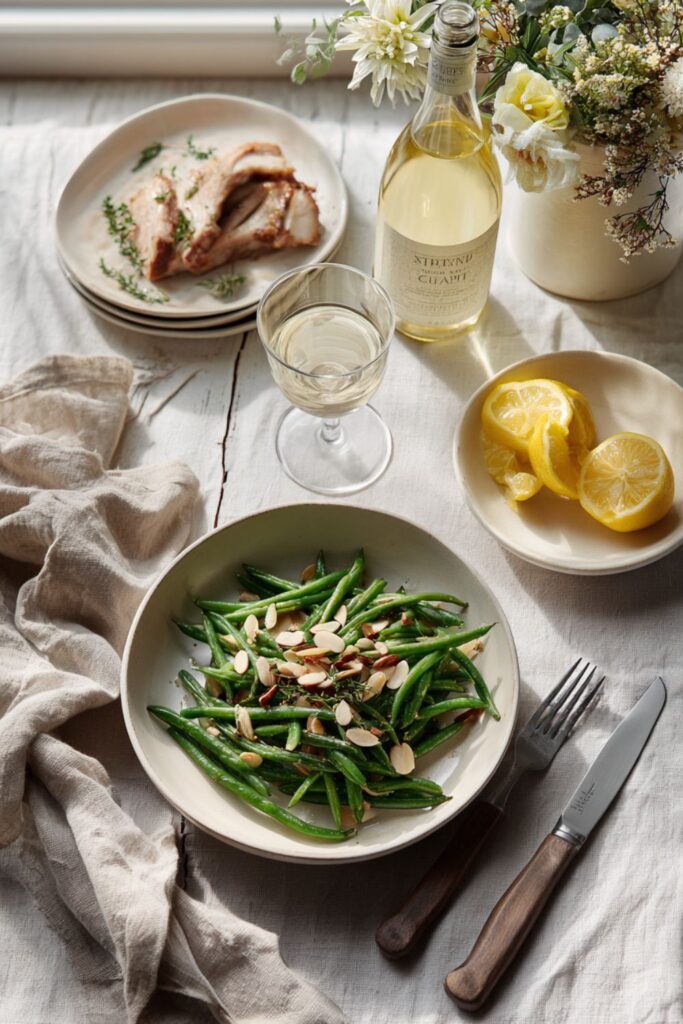 kcalA classic and elegant side dish of crisp-tender green beans tossed with toasted almonds, garlic, and a bright lemon-butter sauce.